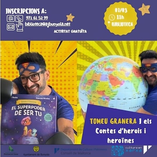 El pròxim 7 de març a les 11 h, la Biblioteca de Bunyola acull una activitat pensada per als més petits (i també per als grans que els acompanyen): “Contes d’herois i heroïnes” amb Tomeu Granera.
